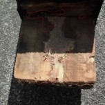 ある現場で…傷んだ木柱を撤去していた時に発見しました。そう、これがシロアリです。(画像クリックで拡大。赤枠で囲った中に白く見えています。)木造住宅にとっ1 -