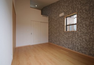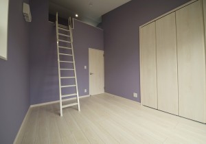 二室ある居室はどちらにもロフトと物入がついているので、収納スペースにも困りません。ナチュラルなデザインのクロスに、鮮やかなラベンダーカラーのクロスを組み合わせたコーディネートを、とても気に入っていただきました。
