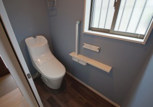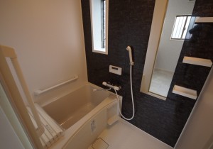 限られたスペースでも、使い勝手が良くお手入れしやすい設備を選択しました。浴室はアクセントパネルのカラーをストーンモザイクにしました。脱衣室の洗面化粧台の扉カラーも浴室と似たカラーを選んだことで一体感が生まれました。トイレのクロスに水色を選んだことで、清潔感のあるさわやかな空間になりました。