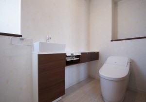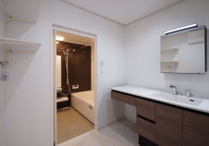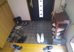 子世帯の玄関は、建物外階段をあがった2階にあります。キッチンや、浴室・洗面脱衣室などの水廻りも元々2階にありましたので、階はそのまま配置を使いやすく変更しました。