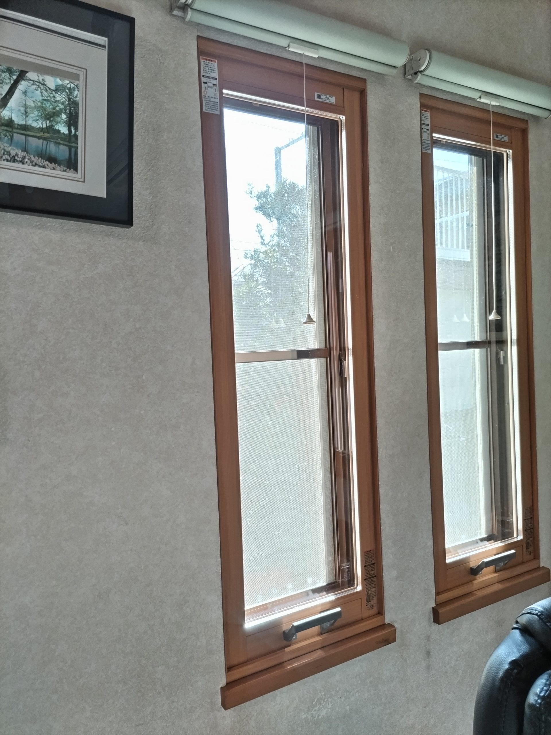 ホール、リビング、キッチンに内窓、2階のキッチン、トイレには室内格子を設置させていただきました。
