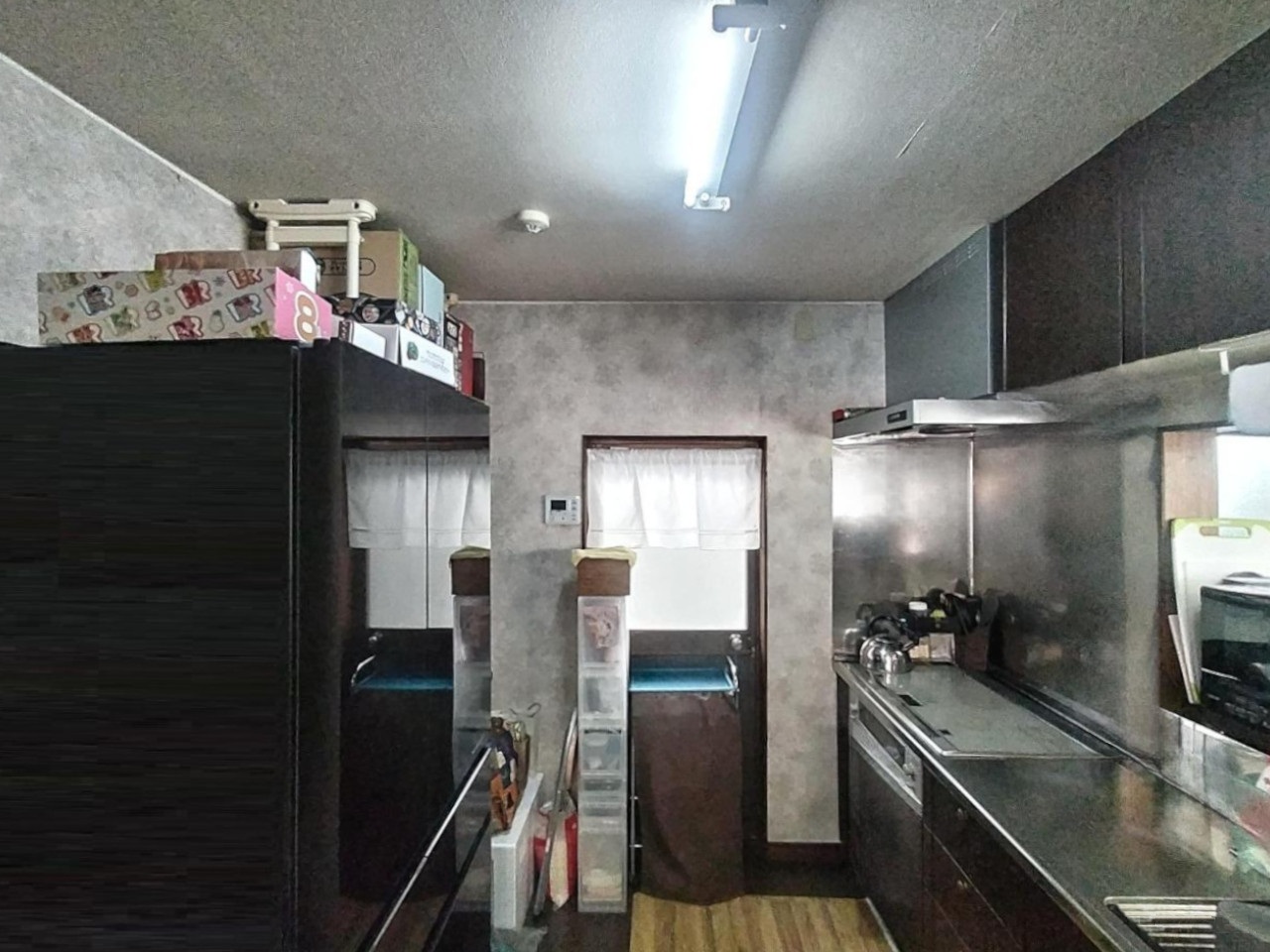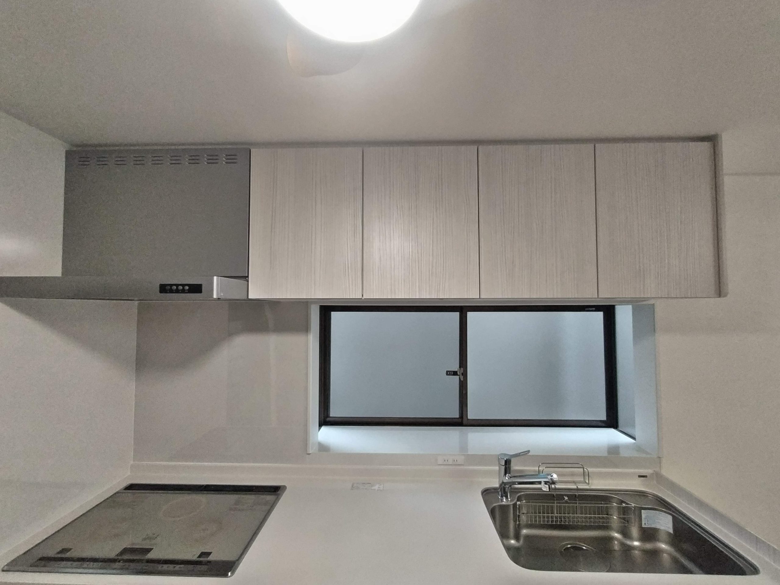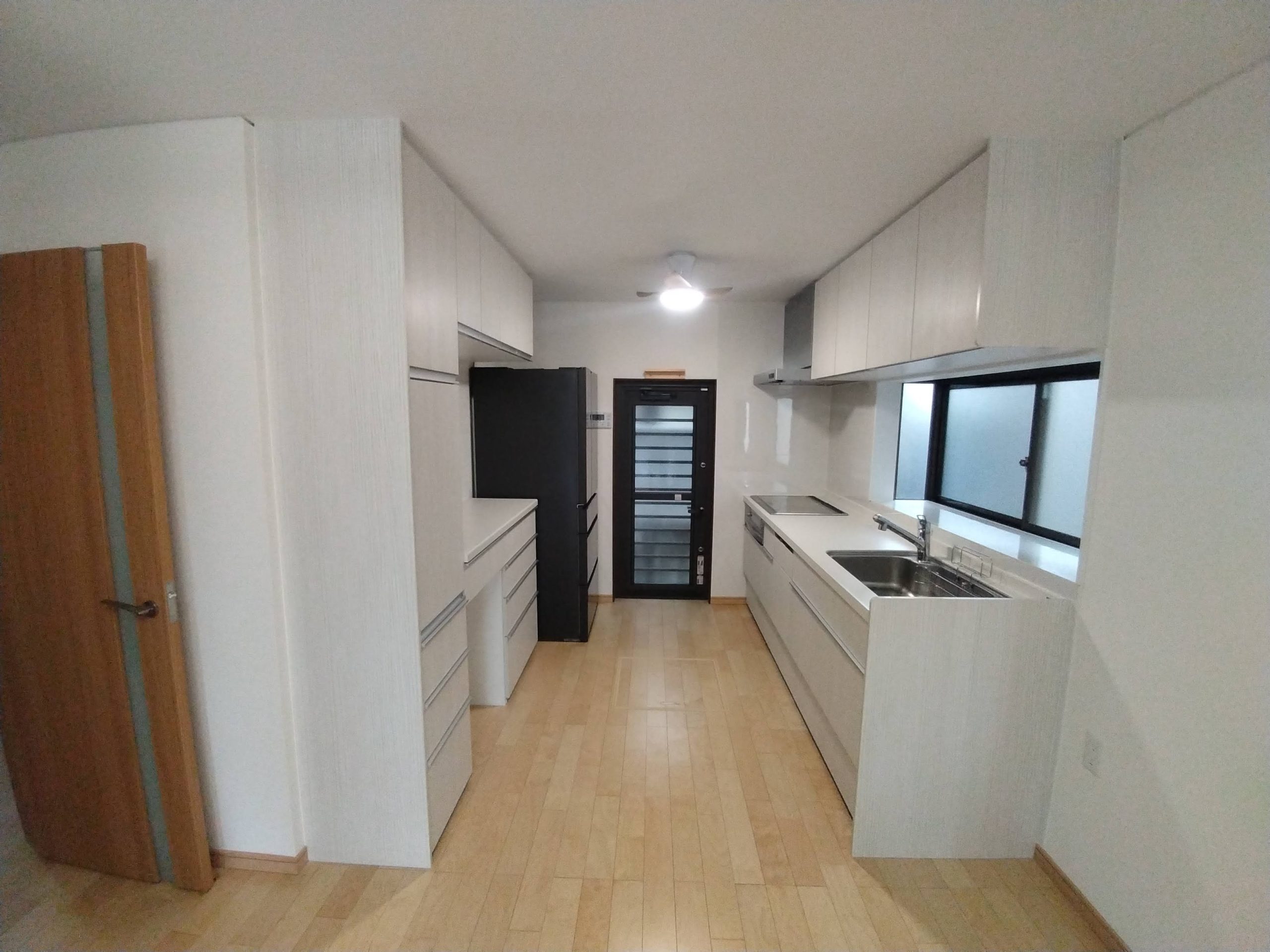 奥まで光が届きにくいキッチンでしたが、白を基調とした木目柄のコーディネートで自然な明るさを感じられるようになりました。