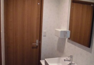 元々、和式トイレの限られた空間の中でのリフォームでしたので、邪魔にならず、且つ効果的に位置に手すりや収納設置しました。画像ではわかりにくいですが、出入口にスライディングドアを採用したことで隣接するドアに干渉することなくお使いいただけるようになりました。